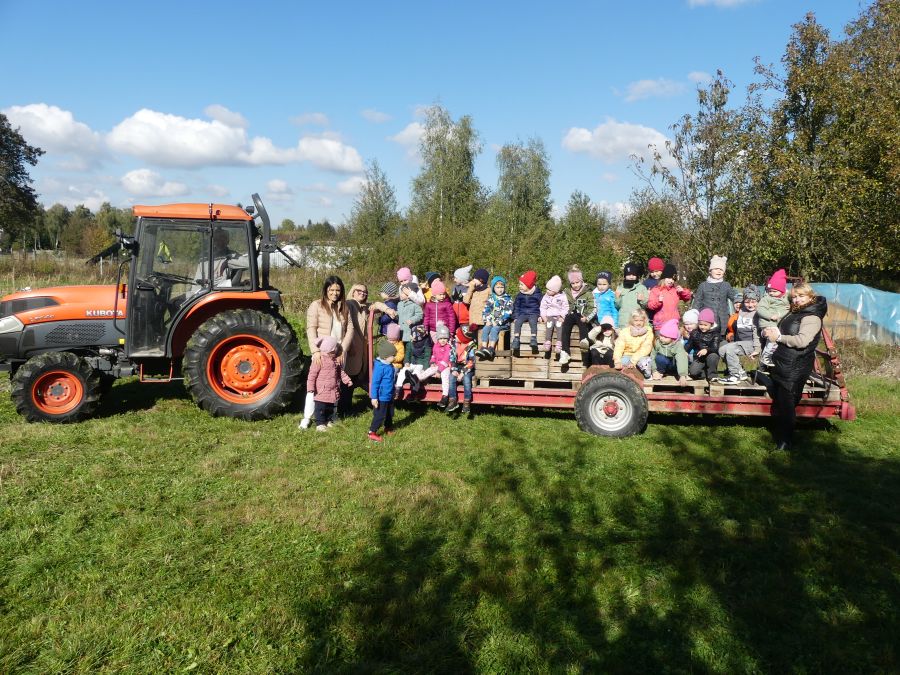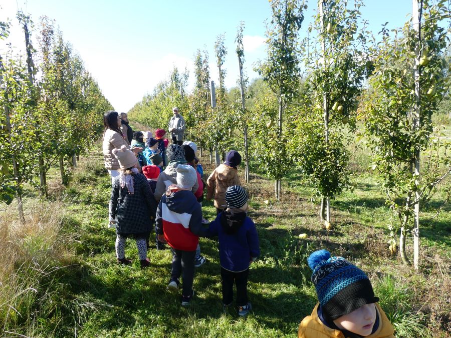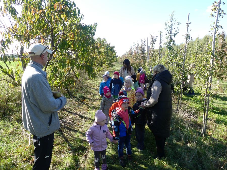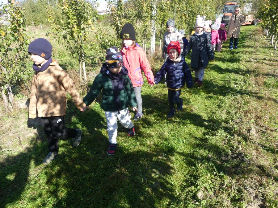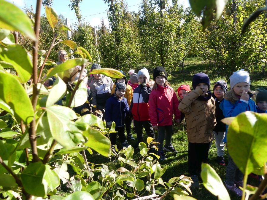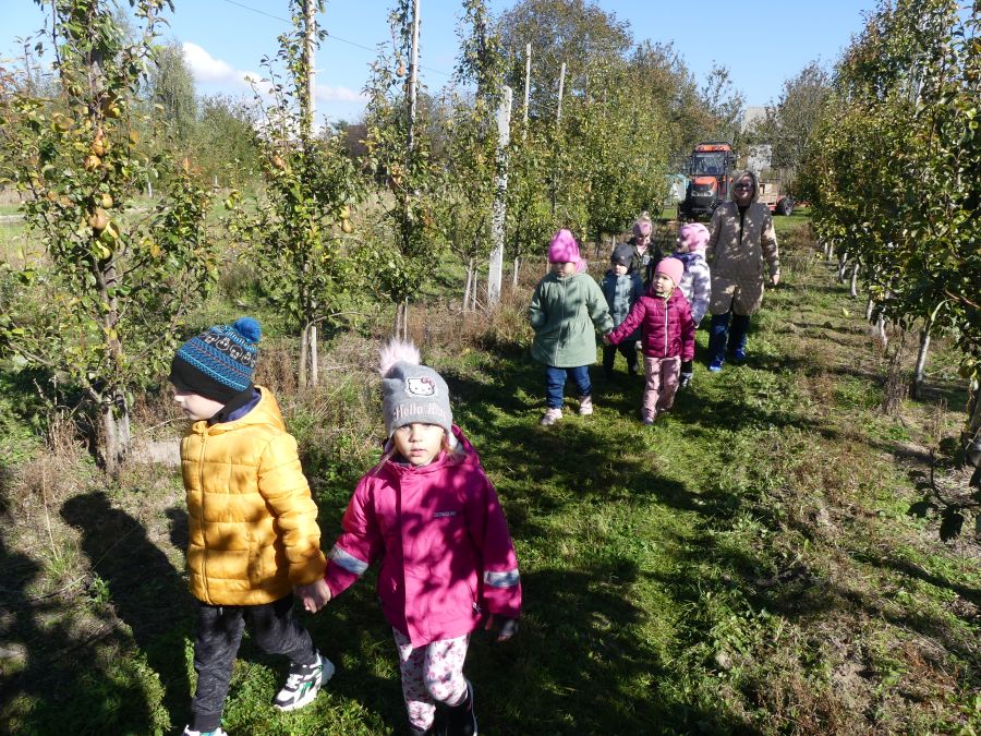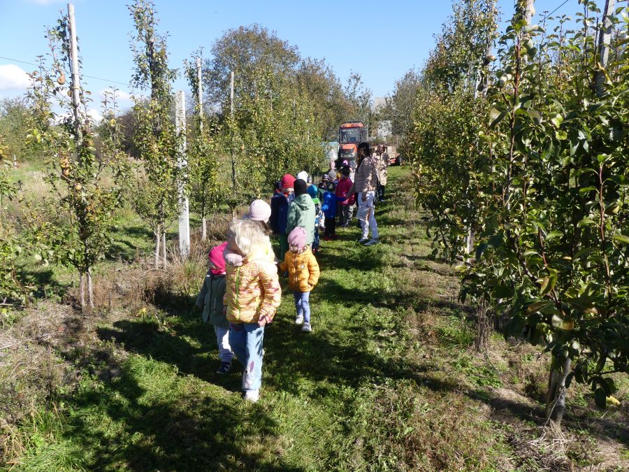 W środę 8 października dzieci z naszego przedszkola wybierały się na zajęcia edukacyjne do pobliskiego sadu państwa Niezgodów. Podczas wycieczki dzieci miały okazję poznać środowisko przyrodnicze jakim jest sad, dowiedzieć się jak wygląda praca którą wykonuje się jesienią. Przedszkolaki miały okazję zapoznać się z urządzeniami oraz maszynami rolniczymi które służą pomocą przy zbiorach a także poznać nazwy i gatunki drzew owocowych. Wizyta w sadzie byłą dla przedszkolaków niezwykłym doświadczeniem, na pewno jeszcze tam zawitamy !