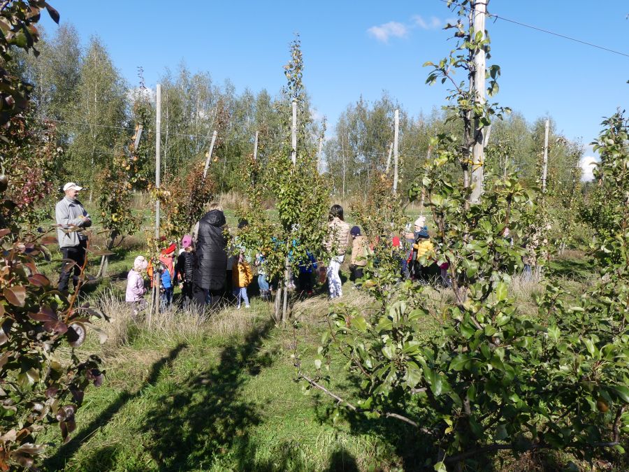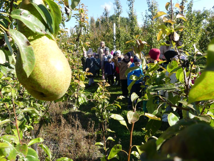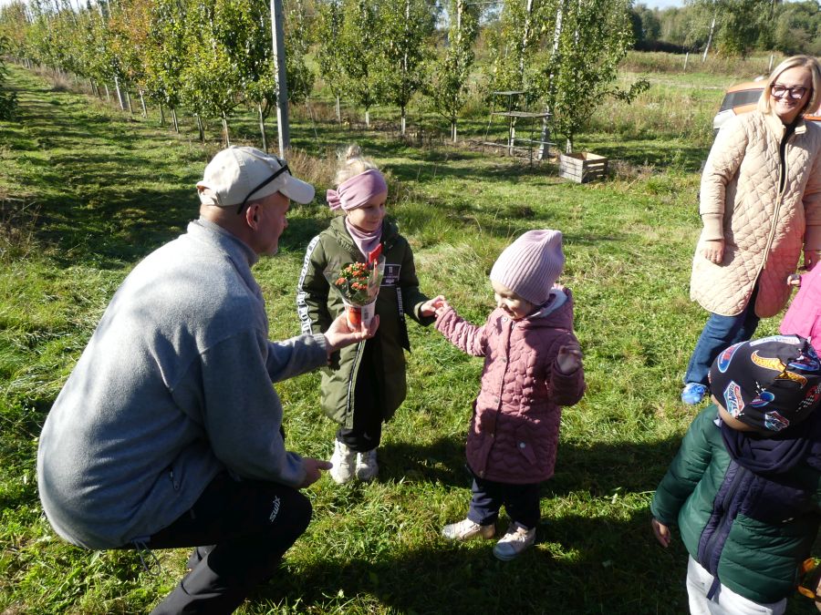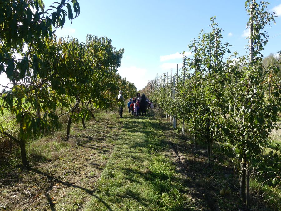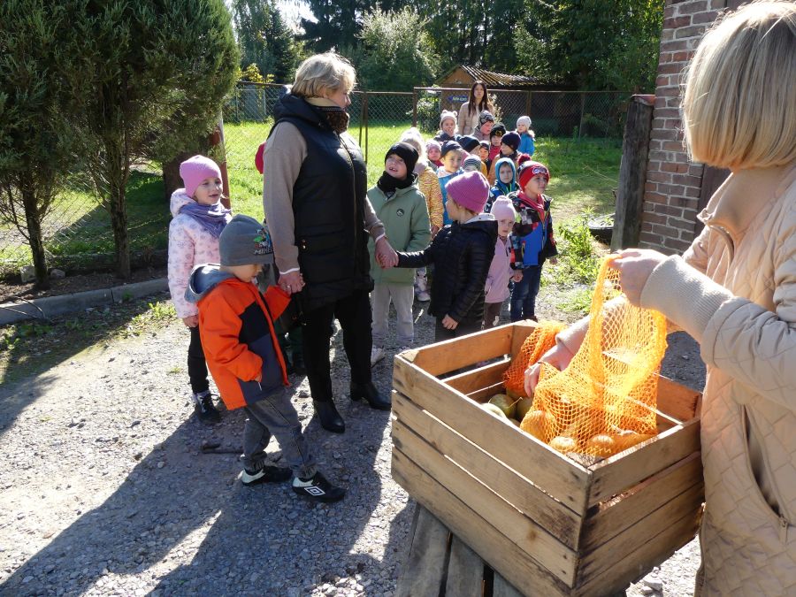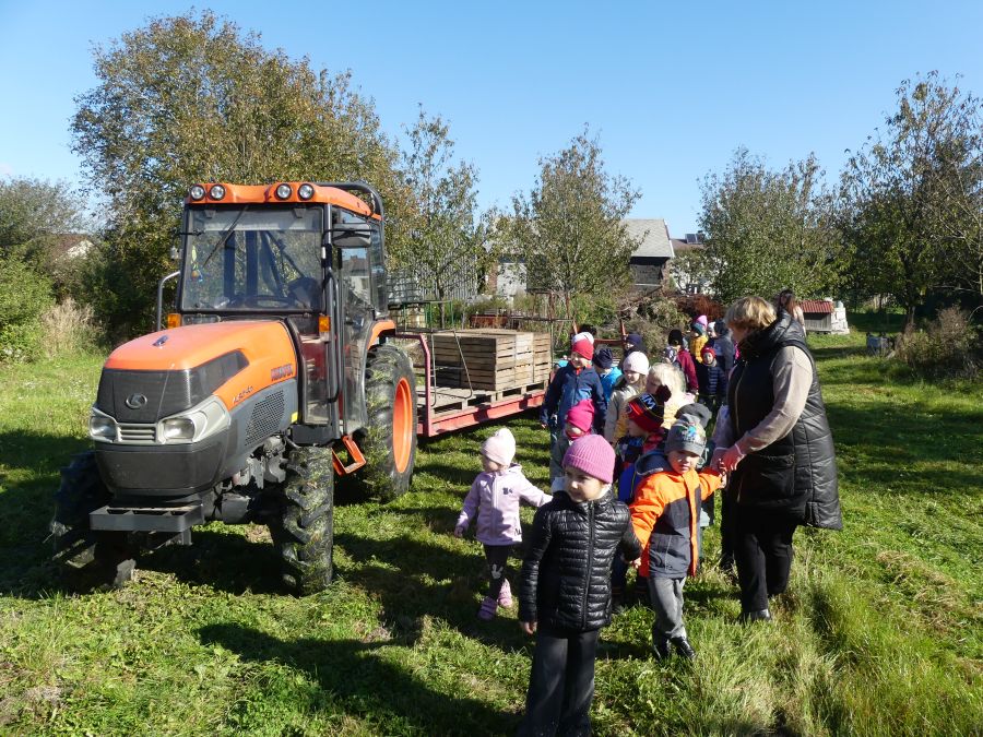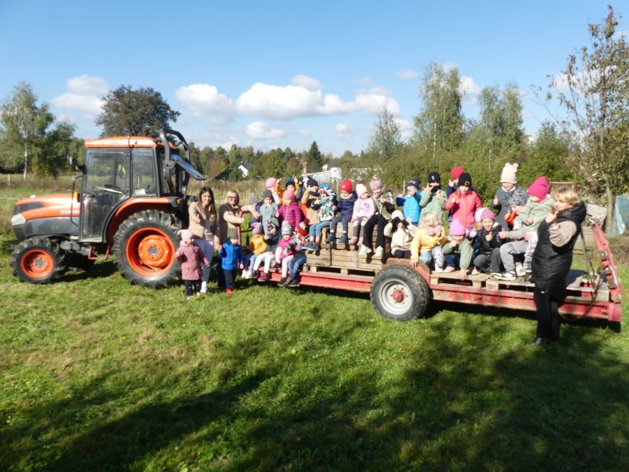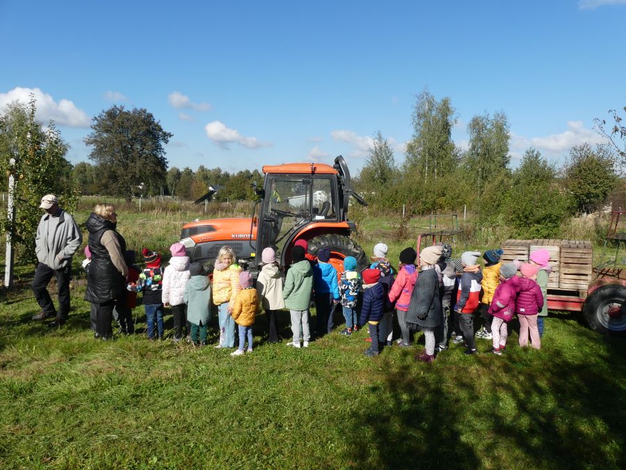 W środę 8 października dzieci z naszego przedszkola wybierały się na zajęcia edukacyjne do pobliskiego sadu państwa Niezgodów. Podczas wycieczki dzieci miały okazję poznać środowisko przyrodnicze jakim jest sad, dowiedzieć się jak wygląda praca którą wykonuje się jesienią. Przedszkolaki miały okazję zapoznać się z urządzeniami oraz maszynami rolniczymi które służą pomocą przy zbiorach a także poznać nazwy i gatunki drzew owocowych. Wizyta w sadzie byłą dla przedszkolaków niezwykłym doświadczeniem, na pewno jeszcze tam zawitamy !